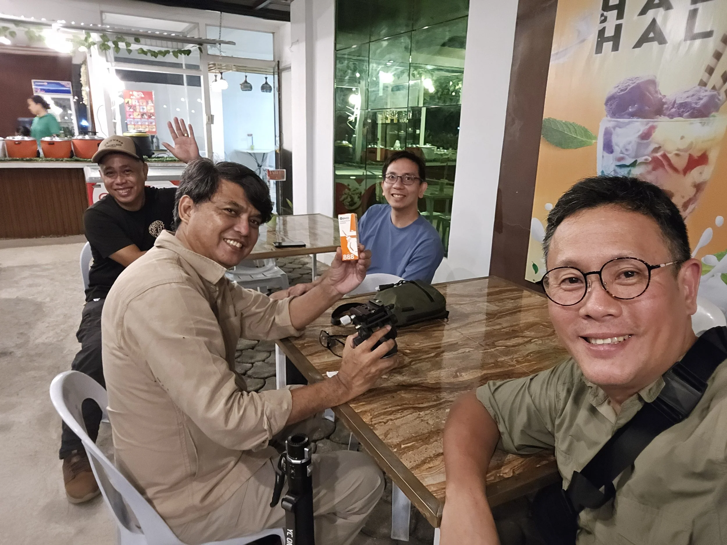 After the hike, we drove down to Mers, a popular local restaurant in Digos. The place was packed, but the meal was worth every minute of waiting—a well-deserved feast for the team. From there, we headed back to the city and opted for an early rest. Thanks to the heavy lunch, two of my companions enjoyed a beer while I settled for my favorite Mogo-Mogo. We washed up our shoes and tripods, and by 9 PM, the entire team was sound asleep, ending the day on a quiet, satisfying note.
